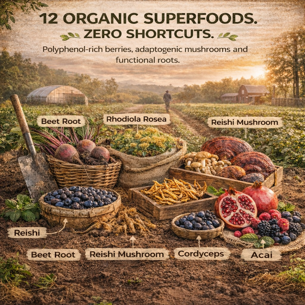 Carefully selected organic superfoods for optimal performance